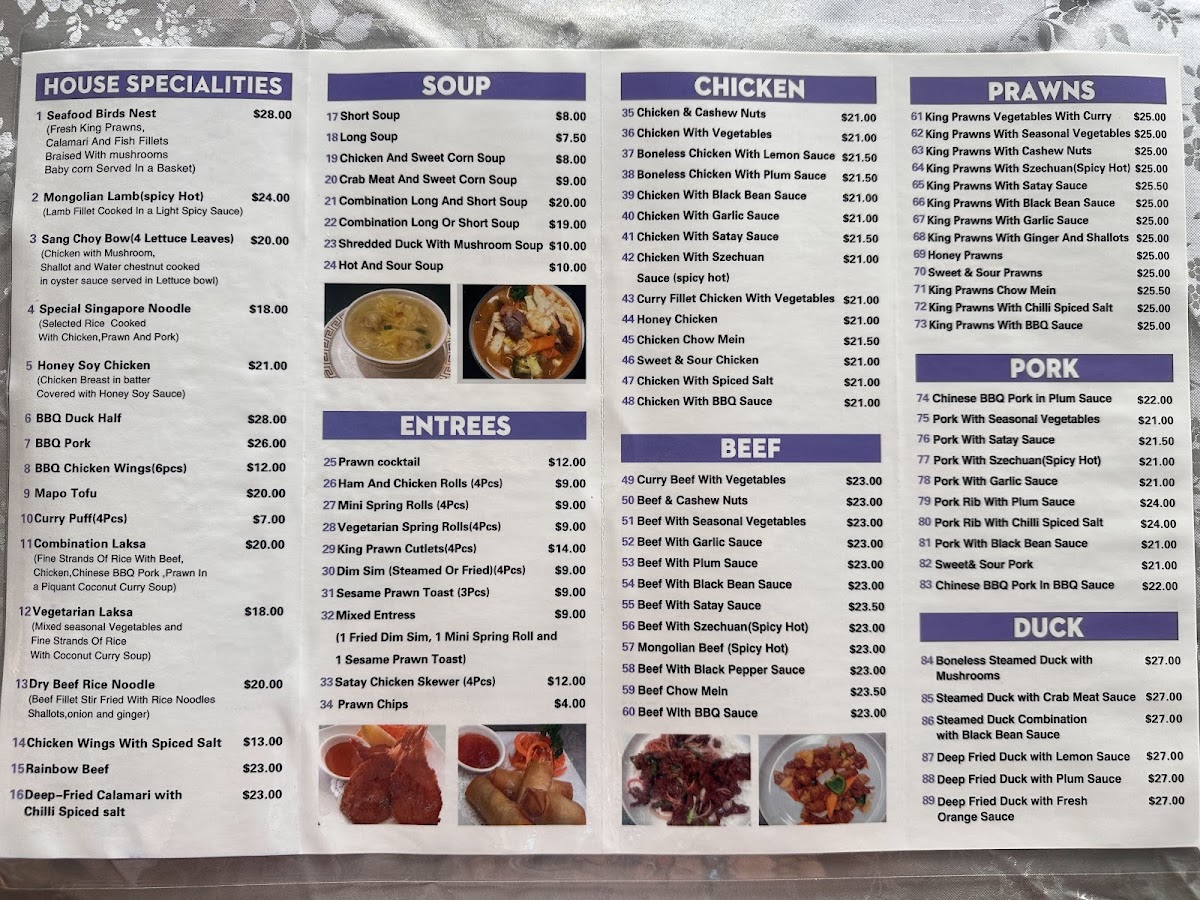 Welcome to 27 Palace, your go-to destination for authentic Chinese cuisine in Port Macquarie. Nestled at 2/28 Hayward St, this charming restaurant boasts a menu that caters to every palate, from tantalizing entrees to rich main courses. Start your meal with delectable Prawn Cocktails or Mini Spring Rolls, each packed with flavor at unbeatable prices. For a hearty main, the Deep Fried Duck with Plum Sauce stands out—crispy, succulent, and worth the A$27 indulgence. Vegetarians will appreciate the myriad of options, while the generous portions ensure no one leaves disappointed.